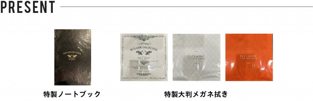 フェア期間中、BJ CLASSICの眼鏡フレームをお買い上げの方に